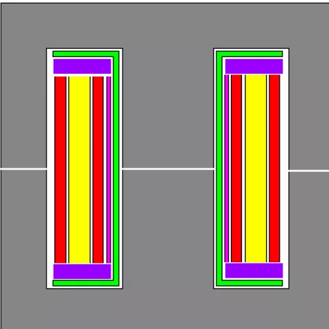 特点:辅助绕组位于线包最里层,然后分别是初级的一半,次级全部,初级的另一半;