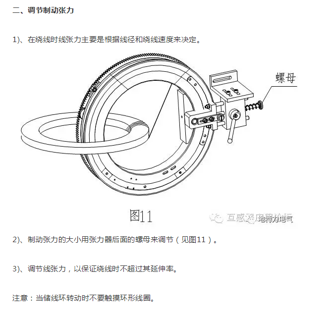 绕线过程中随着绕线的增加,环形线圈外径增大,逆时针旋转小手轮,使压紧轴与环形线圈夹紧力适当。以防止环形线圈变形及损伤漆包线。